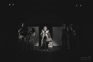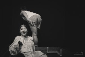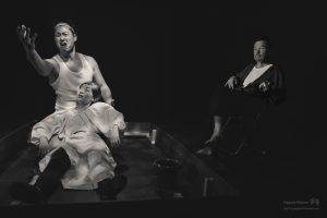 The Sandbox was both thought-provoking and unsettling. The themes of aging, death, and familial dysfunction were played out on stage with strong performances by Atsumi Yamamoto as GRANDMA, Erica Hara as MOMMY, Michael Kruse as DADDY, Shinsuke Tsuda as YOUNG MAN, and Joe Sichi as MUSICIAN. The play is a powerful commentary on how society treats the elderly, and offers a stark reminder of the loneliness and isolation that many elderly experience. Through sharp and witty dialogue, Albee exposes the audience to the harsh realities of aging and dying. He wants us to acknowledge the ways in which we distance ourselves from these truths. The touching, albeit absurd, interaction between GRANDMA and YOUNG MAN forces us to confront our own fears and anxieties about mortality, and we’re certain more than a few people in the audience were surprised by the twist-ending.