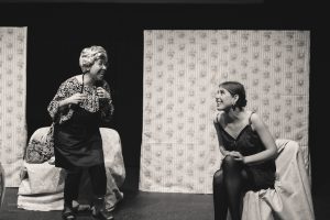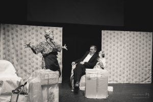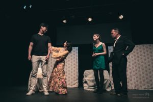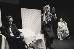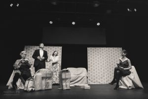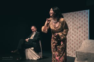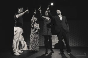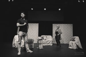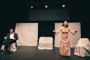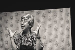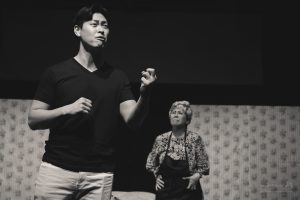 The American Dream was a fascinating and biting critique of contemporary American culture and the shaky foundation it is built upon. The cast of Ana Valdes Lim as GRANDMA, Atsumi Yamamoto as MOMMY, Joe Sichi as DADDY, Emily Bailey as MRS BARKER, and Shinsuke Tsuda as YOUNG MAN did an amazing job of bringing this dark comedy to life. Each character in the play represented a construct firmly attached to a manufactured identity. The back-and-forth between the characters showed the extreme lengths people will go to maintain appearances and to get what they want. These performances were a masterful satire of the excesses of consumer culture and explored how we misguidedly create identities based on materialistic pursuits.