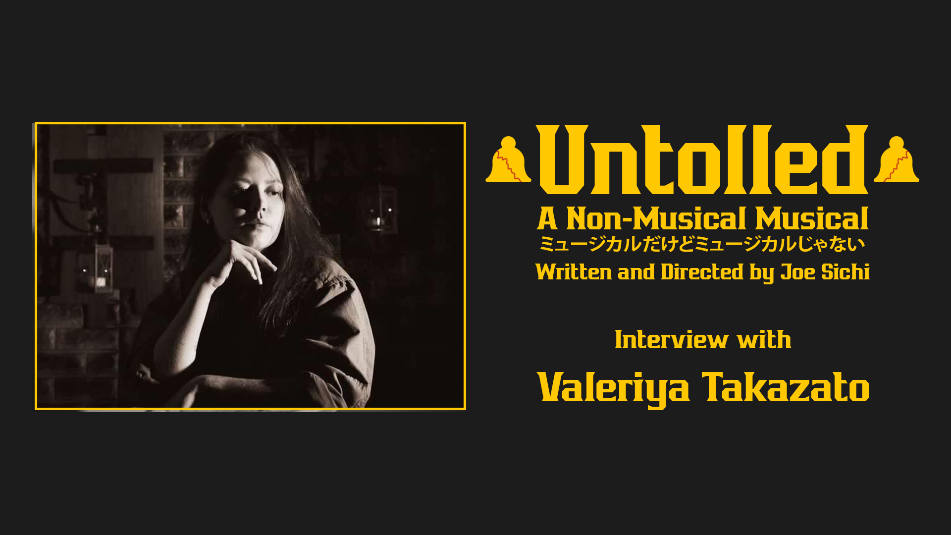 (日本語と英語の字幕) We are so proud of this young lady. When Valeriya started with NP, she was pretty nervous about getting on stage and delivering lines in English. However, with every production, she has built up her courage and determination. Her role as MARY in Untolled will be her largest speaking role to date, and she’s doing an excellent job. Valeriya brings a unique sense of humor and comedic timing to the show. This will be a fun challenge for her, and we’re so excited to see her take it on.