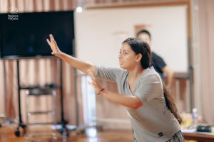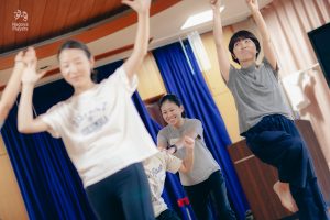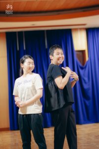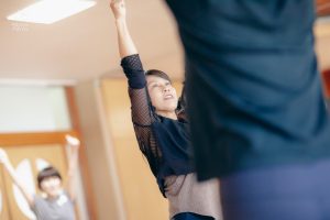 コース2は引き続き舞台上での基礎的な動作の練習を重ね、効果的な表現方法なども取り入れていきます。