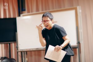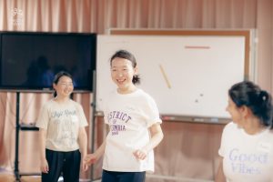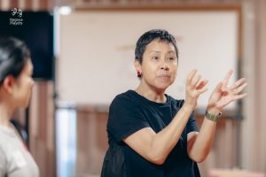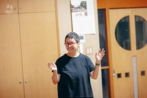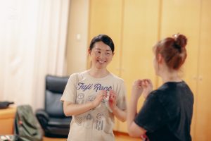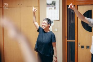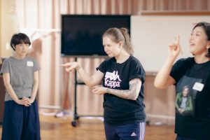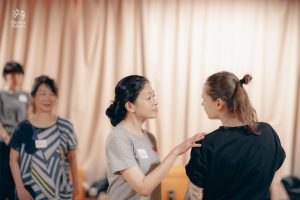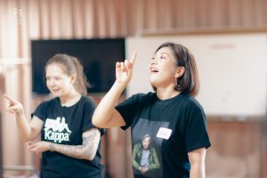 今回のワークショップには初めて演技を試みる方から、既に舞台経験がある方まで様々な人たちが参加しています。年齢差や異文化など7カ国からバックグラウンドの違う人々で構成され、同じ志を共有し、助け合い、協調し合って練習を重ねています。そして、それはグローバルで国際的な空間です。