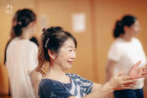 コース1ではパフォーマンスの基礎固めとして体の動きや息の使い方や即興など、体に馴染ませることの大切さを学びました。